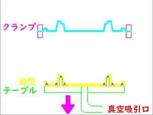 (4) 型内を真空状態にし、気圧差を利用して軟化したシートを金型に密着